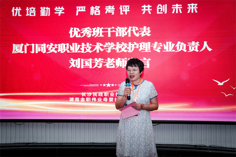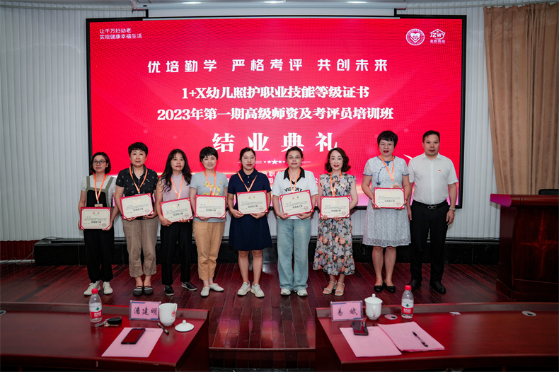 7月9日,1+X幼兒照護職業技能等級證書2023年第一期高級師資及考評員培訓班圓滿落幕,大連市金州區中等職業技術專業學校學科帶頭人孫煜,廈門同安職業技術學校護理專業負責人劉國芳,金職偉業集團有限公司總經理潘建明、院校事業部副總監易斌出席結業典禮并講話。
