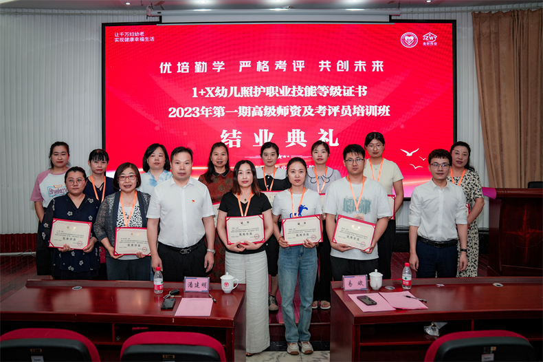 易斌就“祝賀、融合、共舞”三方面作分享,“希望各位老師能明確使命擔當,成為幼兒照護知識的傳播者、學生成長成才的引領者,金職偉業也將全力協助,做好服務,發揮校企協同育人作用,為幼兒照護行業發展貢獻力量。”至此,此次1+X幼兒照護職業技能等級證書2023年第一期高級師資及考評員培訓班正式結業。
