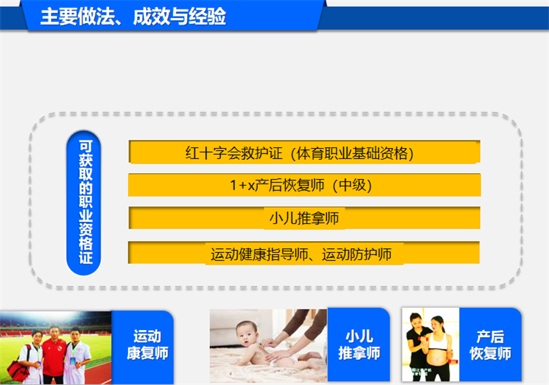 “希望各院校充分發揮自身人才資源優勢,積極探索“產后恢復師、運動康復師”等專業人才培養建設,建立起一支結構合理,既掌握體育運動健康知識又掌握醫學知識的綜合性人才隊伍,為人民群眾提供全方位、全周期的健康管理服務。”