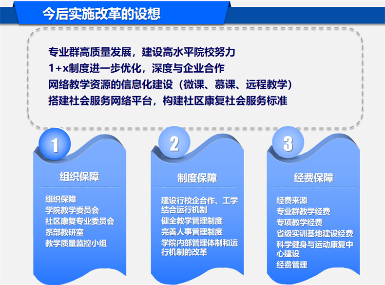 課程最后,李香蘭老師對社區康復專業未來改革之路提出四點設想,即專業群高質量發展,賦能高水平院校建設;1+X證書制度進一步優化,深度開展校企合作;推進微課、慕課、遠程教學視頻等網絡教學資源建設;搭建社會服務網絡平臺,構建社區康復社會服務標準。