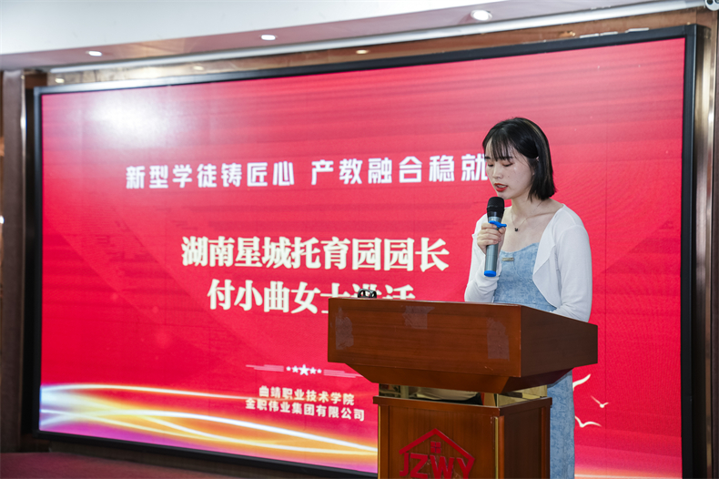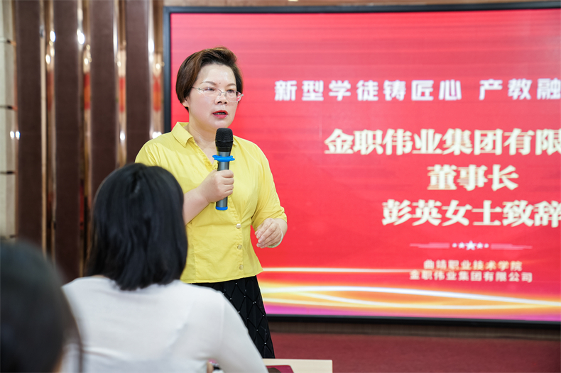 開班典禮伊始,金職偉業(yè)董事長彭英對(duì)各位同學(xué)的到來表示熱烈歡迎,并以“托育行業(yè)發(fā)展前景廣闊、深化校企協(xié)同育人機(jī)制、扎根行業(yè)謀發(fā)展”為主題作分享。彭英提到,此次崗前培訓(xùn)是金職偉業(yè)深化校企合作的重要舉措,金職偉業(yè)也將以此為契機(jī),不斷延伸創(chuàng)新人才培養(yǎng)模式,實(shí)現(xiàn)教育鏈、產(chǎn)業(yè)鏈、人才鏈有機(jī)銜接,為托育行業(yè)蓬勃發(fā)展貢獻(xiàn)力量。“希望各位同學(xué)在接下來的學(xué)習(xí)與就業(yè)中,始終牢記‘學(xué)習(xí)、敬業(yè)、專業(yè)、貼心、創(chuàng)新、愛心’這12個(gè)字,并將所學(xué)新技術(shù)、新標(biāo)準(zhǔn)、新工藝融匯貫通,為托育行業(yè)健康發(fā)展提供有力專業(yè)支持。”