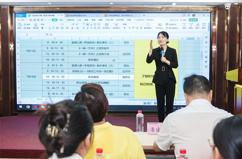 最后,金職偉業(yè)總經(jīng)理潘建明為培訓(xùn)做學(xué)習(xí)動(dòng)員,“金職偉業(yè)是一家有社會(huì)責(zé)任感的企業(yè),我們?cè)谀笅胄袠I(yè)深耕多年,始終致力于深化產(chǎn)教融合,真正賦能學(xué)生就業(yè)創(chuàng)業(yè)與職業(yè)發(fā)展,也希望各位同學(xué)要充分認(rèn)識(shí)此次培訓(xùn)實(shí)習(xí)的目的和意義,做到真學(xué)真思真實(shí)踐,并以此次培訓(xùn)實(shí)踐為契機(jī),成長為托育行業(yè)中堅(jiān)力量。”他強(qiáng)調(diào),此次培訓(xùn)機(jī)會(huì)難得,所有參訓(xùn)學(xué)生要確保培訓(xùn)紀(jì)律性,提高學(xué)習(xí)主動(dòng)性,從嚴(yán)從實(shí)參訓(xùn),為未來就業(yè)創(chuàng)業(yè)奠基。