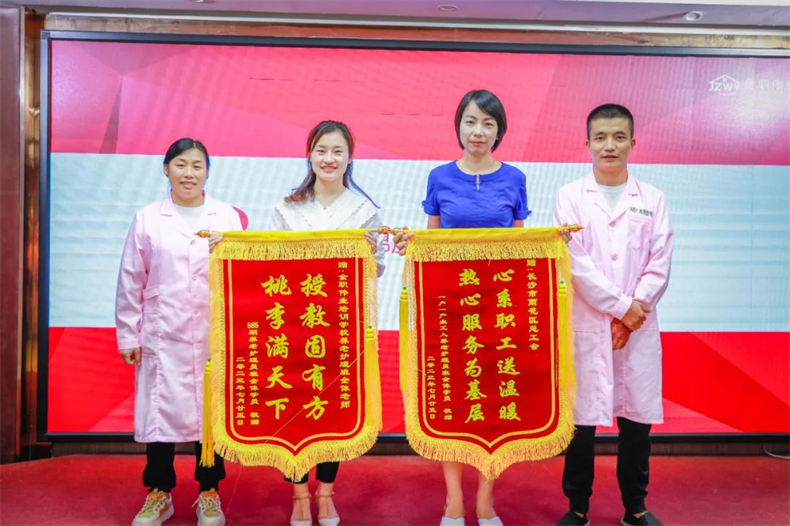 另外,為了感謝雨花區總工會和金職偉業提供的來之不易的學習機會,學員代表黃美紅和楊艷向雨花區總工會和金職偉業獻上感恩旌旗。