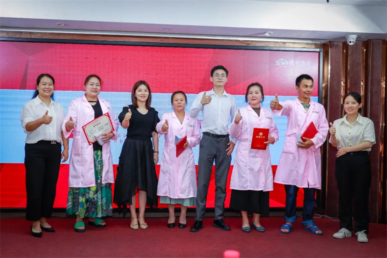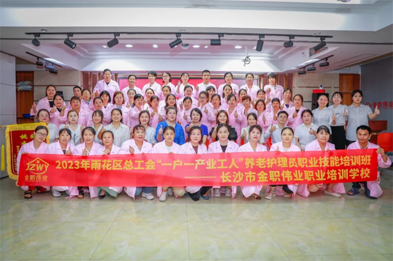 7月25日,雨花區總工會“一戶一產業工人”養老護理員職業技能培訓結業典禮暨就業見面會圓滿結束。雨花區總工會副主席廖莎、金職偉業集團有限公司(以下簡稱“金職偉業”)董事長助理兼品牌運營總監周娟,金職偉業工會主席、長沙市金職偉業職業培訓學校校長蘇瓊,特聘專家楊娟,湖南天地善健康服務集團有限公司、湘麓頤園康養服務中心、九悅國際康養中心等企業代表出席此次結業典禮。