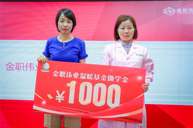 了解到何福蘭家庭困難、丈夫身患重病,典禮上,金職偉業工會特為她頒發1000元助學基金,希望她不忘初心,繼續學習。何福蘭對雨花區總工會和金職偉業提供的幫助表示感謝,“非常開心能來到這里學習,謝謝大家對我的關照,我也不會辜負大家對我的期待,會將所學知識運用到現實生活中,幫助更多人。”