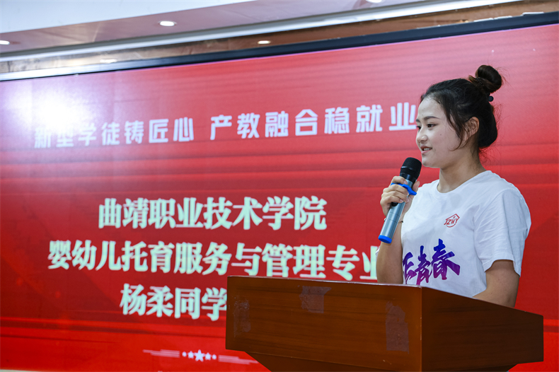 作為優秀學生代表,楊柔同學對金職偉業和曲靖職業技術學院的老師們表示衷心感謝,“在丹丹老師的指導下,讓我們從‘門外漢’到能夠完整的上一堂早教課,感謝她毫無保留地給我們傳授專業知識和人生經驗。”