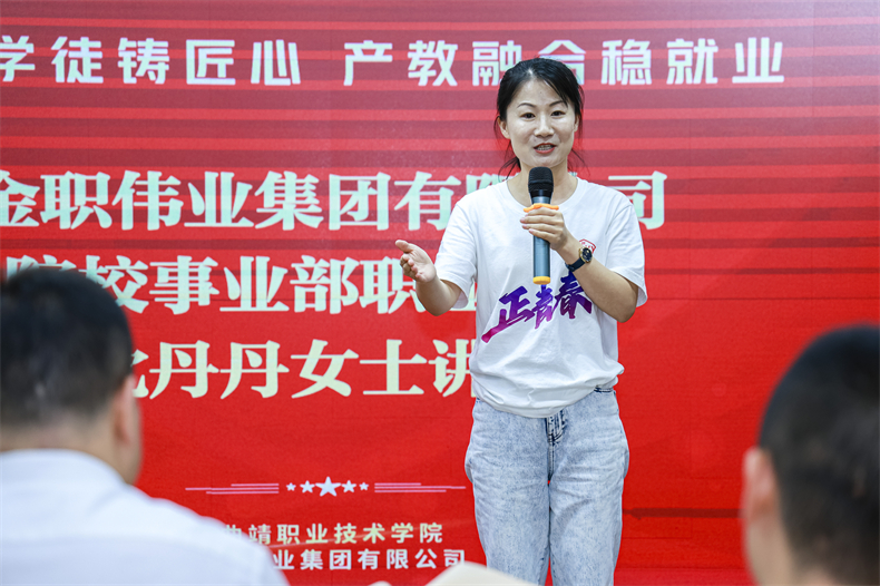 金職偉業始終秉承貼心、專業、創新、感恩的服務理念,做好對院校、師生的服務工作。會上,潘建明殷切地叮囑同學們,“今天,短暫的崗前培訓告一段落,未來,還有將近一年的時間,大家要在實習崗位上工作,希望同學們能將金職偉業‘貼心、專業、創新、感恩’的服務理念融入到實習工作中,開拓你們的托育未來。”