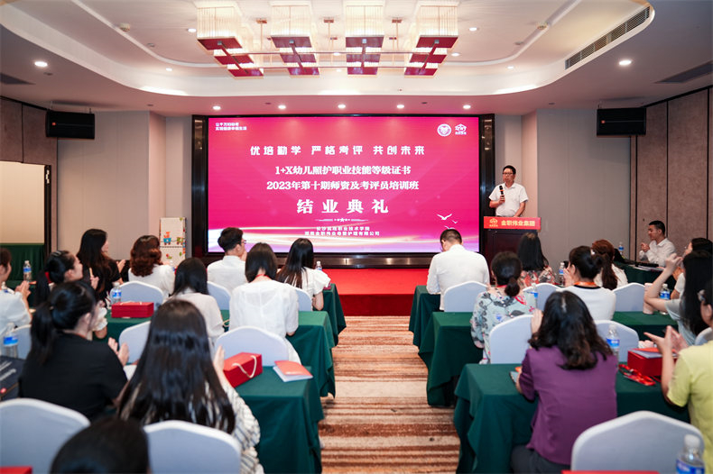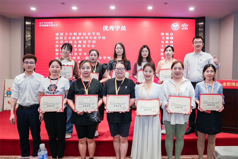 8月8日,1+X幼兒照護職業技能等級證書2023年第十期師資及考評員培訓班正式收官,福建衛生職業技術學院林旭星等13位老師獲評“優秀學員”、江蘇省寶應中等專業學校蔡莉等9位老師獲評“優秀班干部”。
