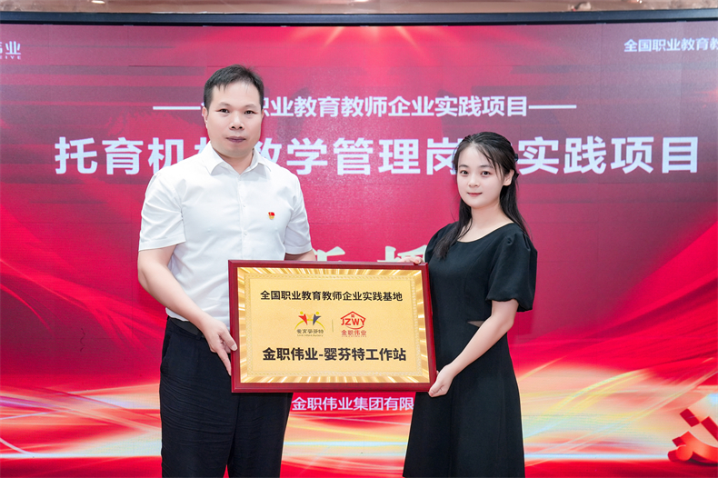 值得一提的是,以此次教師企業實踐項目開展為契機,雙方進行了“全國職業教育教師企業實踐基地-金職偉業-嬰芬特工作站”授牌儀式,以共同推動師資隊伍建設不斷深入,實現互利共贏,共同發展。