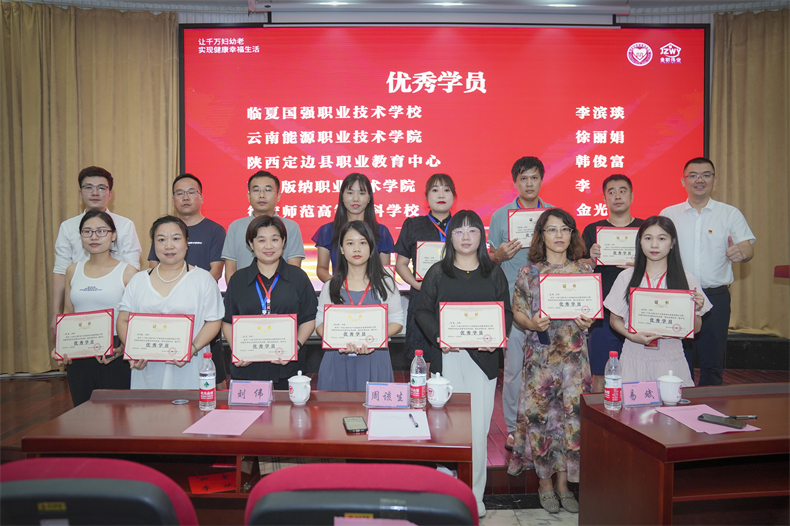8月11日,1+X幼兒照護及產后恢復2023年第五期考務技術及督導員培訓班圓滿收官,15位老師獲評“優秀學員”,9位老師獲評“優秀學生干部”。