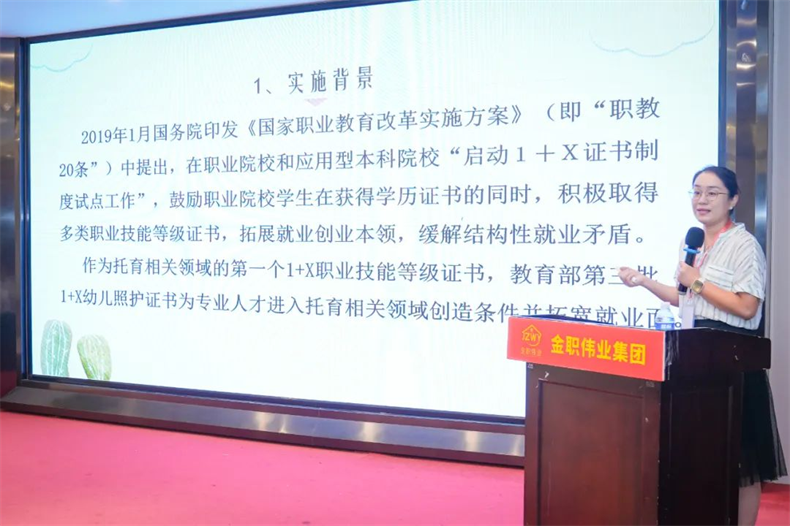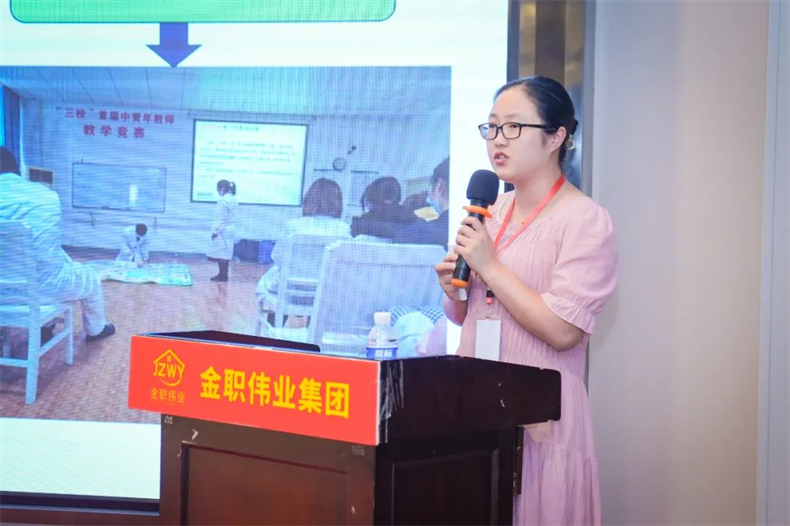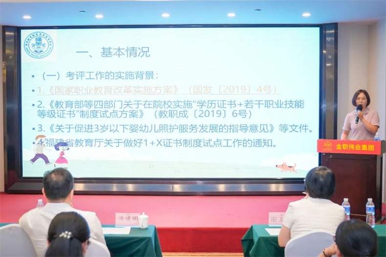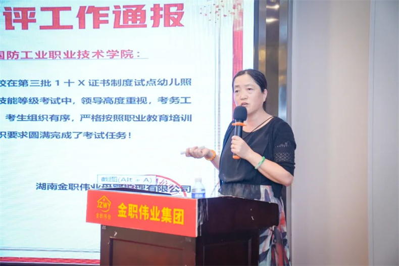 為貫徹落實(shí)《國家職業(yè)教育改革實(shí)施方案》和《關(guān)于在院校實(shí)施“學(xué)歷證書+若干職業(yè)技能等級證書”制度試點(diǎn)方案》有關(guān)精神,積極推動 1+X 證書制度試點(diǎn)幼兒照護(hù)職業(yè)技能等級證書工作實(shí)施,加強(qiáng)考評人員隊(duì)伍建設(shè)和管理,保障職業(yè)技能等級評價質(zhì)量,8月16日,金職偉業(yè)集團(tuán)有限公司(以下簡稱“金職偉業(yè)”)特舉辦第三期1+X幼兒照護(hù)典型案例分享座談會。金職偉業(yè)總經(jīng)理潘建明,永州職業(yè)技術(shù)學(xué)院護(hù)理學(xué)院院長、金職偉業(yè)特聘專家謝玉琳教授,金職偉業(yè)院校事業(yè)部副總監(jiān)易斌出席座談會。