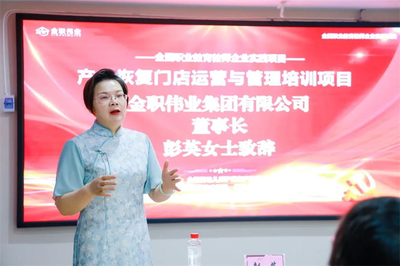 8月21日,2023年職業教育教師企業實踐項目——產后恢復門店運營與管理培訓班圓滿結業,金職偉業集團有限公司(以下簡稱“金職偉業”)董事長彭英,德宏職業學院楊賽何,金職偉業院校事業部副總監易斌出席典禮并講話。
