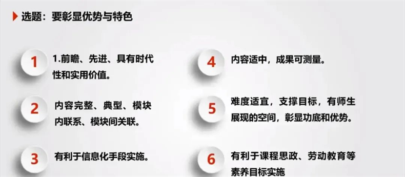 大賽選題方面,李春蘭認(rèn)為,參賽選題應(yīng)符合專業(yè)標(biāo)準(zhǔn)、課程標(biāo)準(zhǔn)與1+X證書標(biāo)準(zhǔn)的要求,符合結(jié)構(gòu)化團(tuán)隊(duì)要求、參賽資格要求、教材要求與信息化手段要求,同時彰顯自身優(yōu)勢與特色,具有前瞻性、先進(jìn)性、時代性。除此之外,選題還應(yīng)有利于信息化手段的實(shí)施,利于課程思政、勞動教育等素養(yǎng)目標(biāo)的實(shí)現(xiàn)。