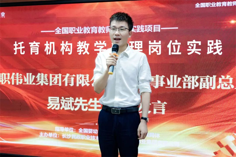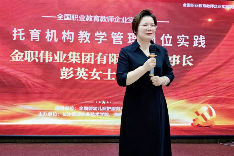 9月14 日,2023年全國職業(yè)教育教師企業(yè)實(shí)踐項(xiàng)目——托育機(jī)構(gòu)教學(xué)管理崗位實(shí)踐項(xiàng)目圓滿結(jié)業(yè)。金職偉業(yè)集團(tuán)有限公司(以下簡稱“金職偉業(yè)”)董事長彭英、院校事業(yè)部副總監(jiān)易斌出席結(jié)業(yè)典禮。