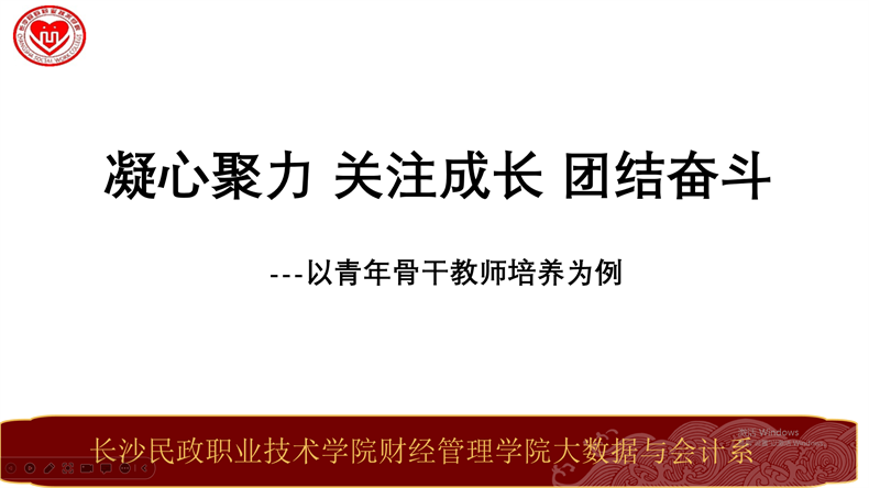 最后,周艷分享了長沙民政職業技術學院財經管理學院大數據與會計系青年骨干教師培養的成效。她講到,在學校教師培養計劃的推進下,大部分青年教師成為了“雙師型”教師,并具備行業企業工作經歷,還在骨干課程建設競賽中擔任指導教師,更有優秀者獲得教育廳廳級課題1項。雖然,教師培養取得了顯著成效,但是,周艷認為,教師培養過程中也顯露出不少問題,如教師的教學研究能力和教學競賽能力還有待提高。針對這些問題,她指出,青年教師需仔細閱讀1-3年教研教改文章、講師后專業論文及課題申報文章,并積極參加教師職業技能大賽與教師教學能力大賽,嚴格要求自己,不斷提升自己的專業技能。