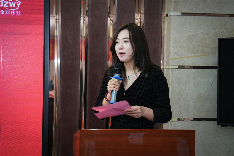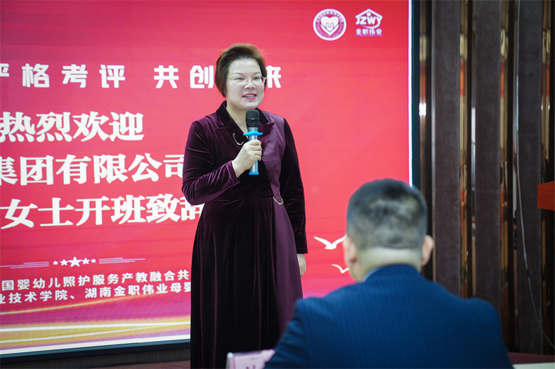 開班典禮伊始,金職偉業(yè)董事長彭英發(fā)表講話,她對各位參訓(xùn)教師的大力支持與信任表示感謝,“金職偉業(yè)扎根母嬰領(lǐng)域,致力于通過人才培養(yǎng)與評價、就業(yè)與創(chuàng)業(yè)、人力資源支持、產(chǎn)業(yè)學(xué)院賦能、人才輸送等方式全力推動母嬰行業(yè)健康發(fā)展。”她指出,人才是企業(yè)與行業(yè)發(fā)展的第一資源,而職業(yè)教育肩負著培育大國工匠的重要使命,金職偉業(yè)將積極響應(yīng)教育部關(guān)于深化職普融通、科教融匯、產(chǎn)教融合的重要戰(zhàn)略,與各院校在標(biāo)準(zhǔn)、教材、職教產(chǎn)品、大賽、產(chǎn)教融合共同體等方面深入合作,全力賦能人才培養(yǎng)工作。