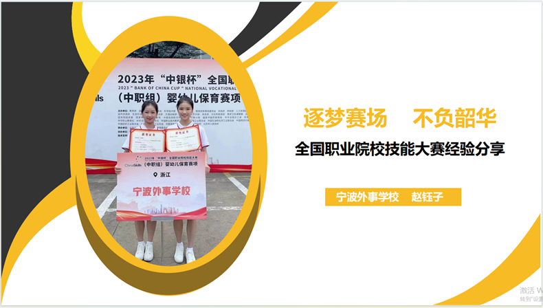 課上,趙鈺子對全國職業(yè)院校技能大賽(中職組)嬰幼兒保育賽項(xiàng)中的職業(yè)素養(yǎng)測評(píng)、嬰兒保育技能實(shí)操與嬰兒早期學(xué)習(xí)支持三個(gè)模塊分別進(jìn)行項(xiàng)目解讀,并分享了寧波外事學(xué)校參加全國職業(yè)院校技能大賽的幾點(diǎn)經(jīng)驗(yàn)。