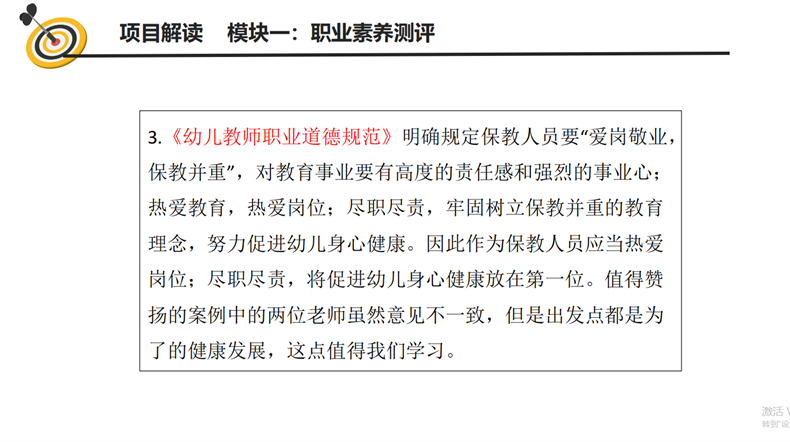 就職業(yè)素養(yǎng)測評(píng)模塊如何拿到較高的分?jǐn)?shù),趙鈺子認(rèn)為應(yīng)從兩方面入手,一是選擇題方面,她建議參賽學(xué)生在進(jìn)行賽前練習(xí)時(shí),應(yīng)著重關(guān)注賽題本質(zhì),理清題目內(nèi)在邏輯,做到舉一反三,并靈活應(yīng)對同一類題的不同變化形式。二是主觀題,她講到,主觀題答題需有國家相關(guān)文件為支撐,采用理論與實(shí)際相結(jié)合的答題方式,以獲得較高的答題分?jǐn)?shù)。