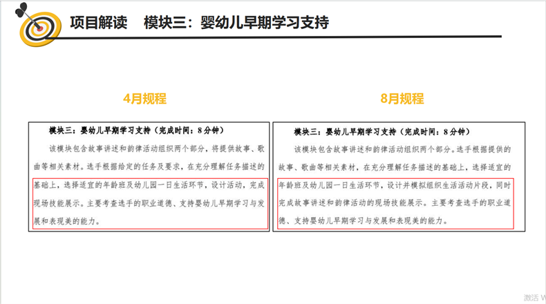 趙鈺子講到,在嬰兒早期學(xué)習(xí)支持模塊,參賽學(xué)生應(yīng)合理運(yùn)用語言的表達(dá)技巧,將故事、兒歌與生活活動(dòng)相結(jié)合,編排與幼兒年齡特點(diǎn)相符合的舞蹈,給予幼兒互動(dòng)和運(yùn)用已有經(jīng)驗(yàn)的機(jī)會(huì)。