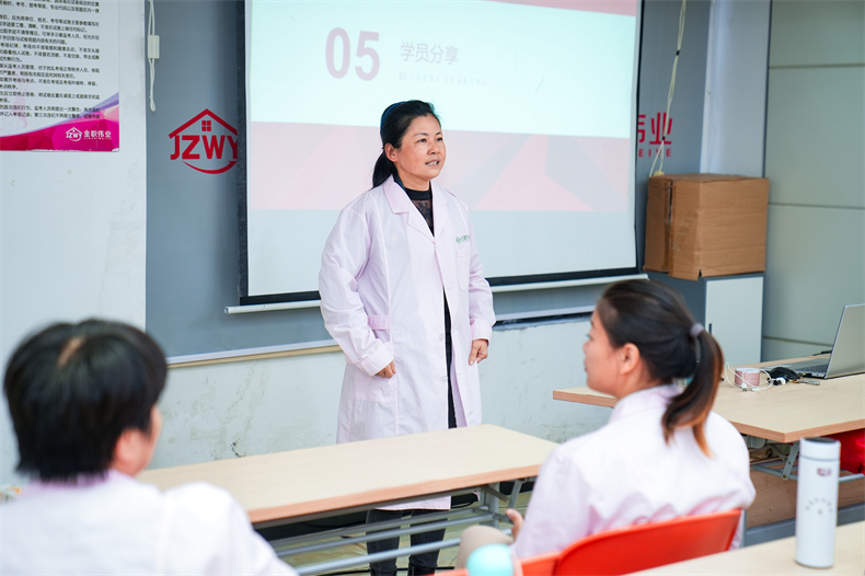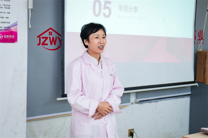 對于即將離開的月嫂班大家庭,學員們感慨萬千,紛紛上臺分享自己的學習感受與心得。