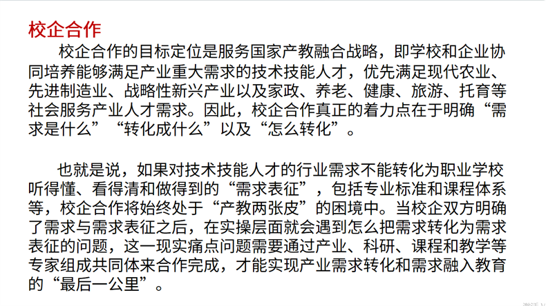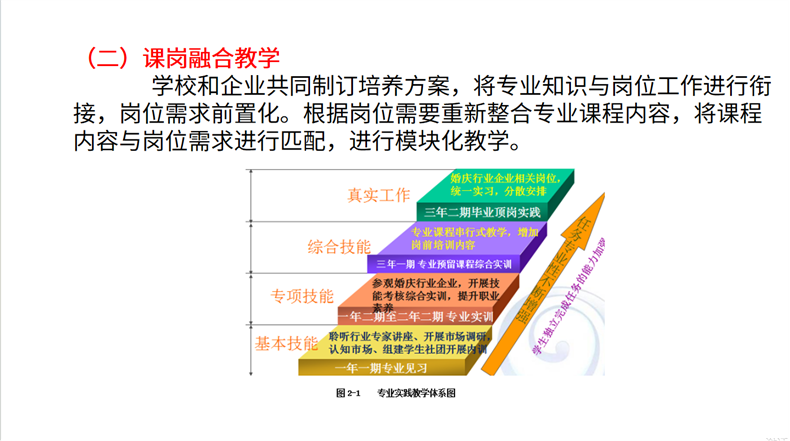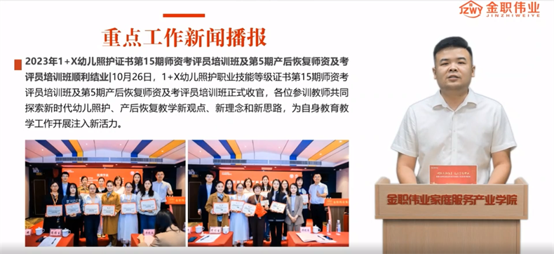 最后,張平芳談到,推進“崗課賽證”與1+X”證書制度融通,促進人才培養(yǎng),需要政校企行攜手,共同發(fā)力。一是推進課證融合教學,將證書融入課程,構建專業(yè)課程融通體系,實現(xiàn)專業(yè)與職業(yè)并進;二是推進課崗融合教學,學校和企業(yè)共同制訂培養(yǎng)方案,根據(jù)崗位需求重新整合專業(yè)課程內(nèi)容,將課程內(nèi)容與崗位需求進行匹配,進行模塊化教學;三是實現(xiàn)課賽對接與證賽對接教學,加強“X”證書教學資源的建設,教師方面,注重“1+X”證書制度的教師隊伍建設與改革,教材方面,緊跟產(chǎn)業(yè)升級變化,借助“互聯(lián)網(wǎng)+”“智能+”等手段,建立電子化的教學資源庫,編寫活頁教材,教法方面,采用模塊化、分工協(xié)同的教學方式,或運用理論與實踐有效結合的教法。11月11日,金職大講堂將開啟第二十一期第100講,課程將邀請齊魯師范學院學前教育學院教授宮盛花,進行《基于ITERS-3評估提升嬰幼兒教育質(zhì)量》主題授課。屆時,誠邀各位行業(yè)專家、院校老師共同參與。