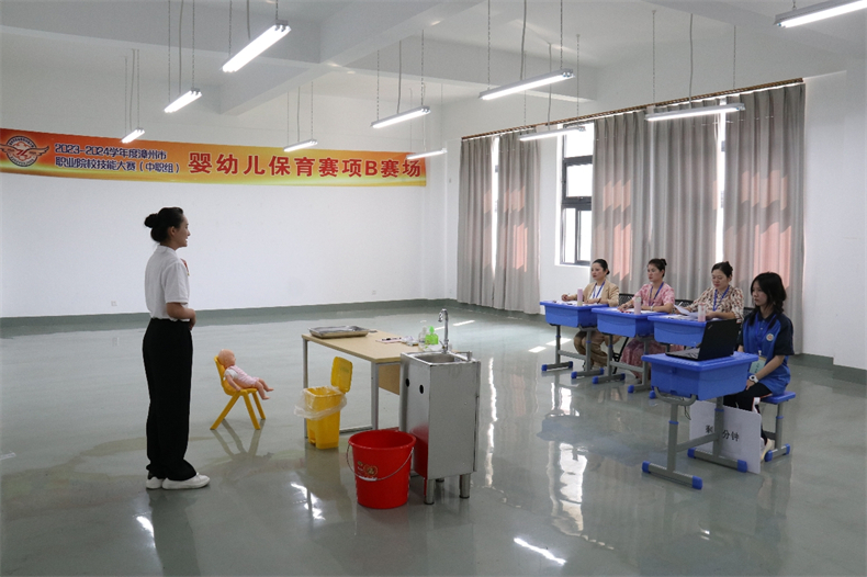 為全面貫徹落實國家對技能人才工作的重要指示精神,在全社會弘揚工匠精神,激勵廣大青年走技能成才、技能報國之路,培養更多高素質技術技能人才,11月4日至5日,2023-2024學年度漳州市職業院校技能大賽“嬰幼兒保育”賽項在漳州高新職業技術學校開賽,金職偉業為大賽提供技術平臺支持。