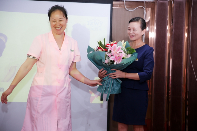 “這段時(shí)間里,我收獲很多,馬上就要結(jié)束了,我們將各自踏入歸途。十幾天的時(shí)間里,我們從陌生到熟悉。同學(xué)們的活潑可愛、老師們的專業(yè)細(xì)心,將成為我人生旅途中一段最美好的時(shí)光,我祝福所有的同學(xué)們學(xué)業(yè)所成,身價(jià)翻倍,驚喜和幸運(yùn)連連,并借此機(jī)會(huì),代表同學(xué)們跟老師們說聲,謝謝您,您辛苦了!”231期高級(jí)母嬰保健班班長胡紅霞發(fā)表了獲獎(jiǎng)感言,并與同學(xué)們將一大束鮮花獻(xiàn)給她們最敬愛的唐詠平講師,以表達(dá)這段時(shí)間的栽培之恩。