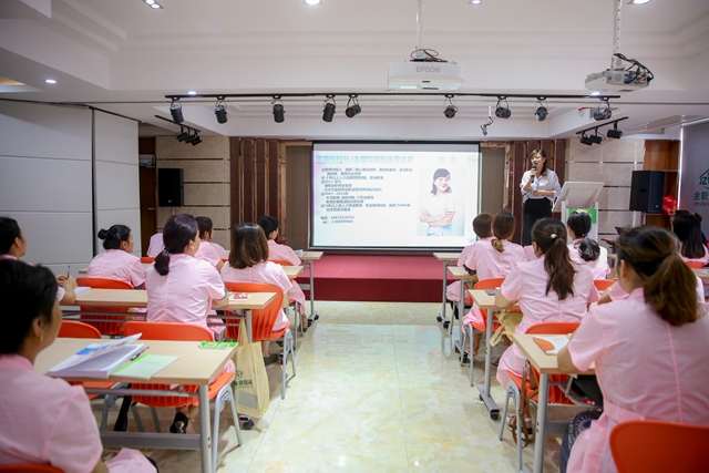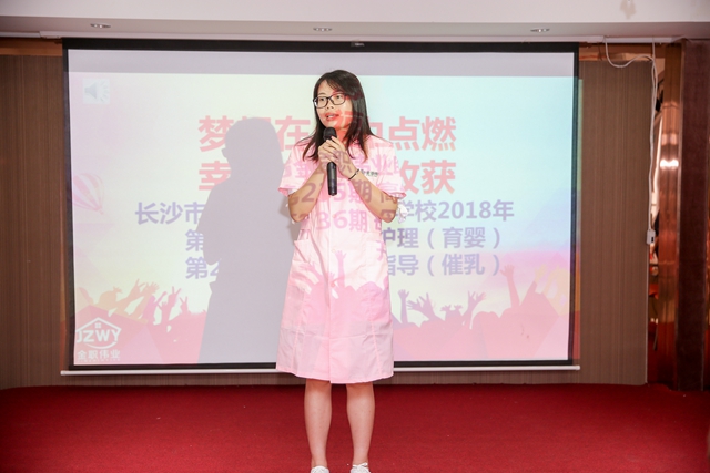 運營總監黃娟女士首先向學員們介紹了金職偉業公司的行業定位,發展趨勢、成長背景及優勢,接著又從培訓課程、產品研發等方面結合學員后續的就業創業扶持力度,進行了重點闡述。黃總表示金職偉業將始終堅持打造全國一流的現代家庭服務產業生態平臺的企業愿景,扎實踐行讓千萬婦幼老實現健康幸福生活的企業使命,不斷地給廣大學員們搭建更專業的平臺,營造更輕松的氛圍,為學員們實現就業夢創業夢創造便利條件,一起撐起母嬰行業這艘大船。