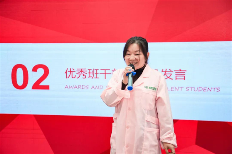 典禮上,熊筱燕獲評優秀班干部、優秀學員并發言。她感謝了金職偉業授課老師的精心授課并分享了自己的學習感受。她談到,在培訓期間,理論與實踐相結合的教學模式讓她熟練掌握了系統性的母嬰護理技能,也讓她逐漸成長為一名專業的月嫂。