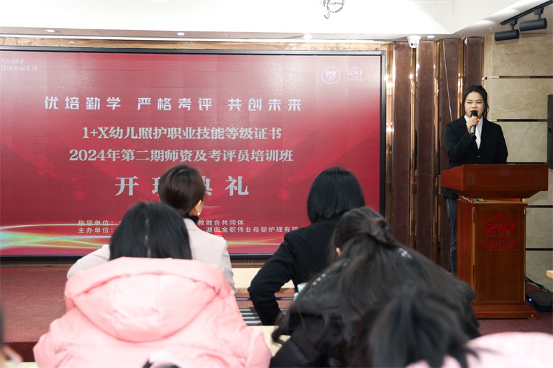 2月23日,金職偉業2024年新春首期幼兒照護師資及考評員培訓班舉行開班典禮,來自全國各職業院校的15名職業教師相聚星城長沙,在新年節慶的余韻中開啟新一年的學習培訓,共同學習幼兒照護知識,明確考評流程與標準。