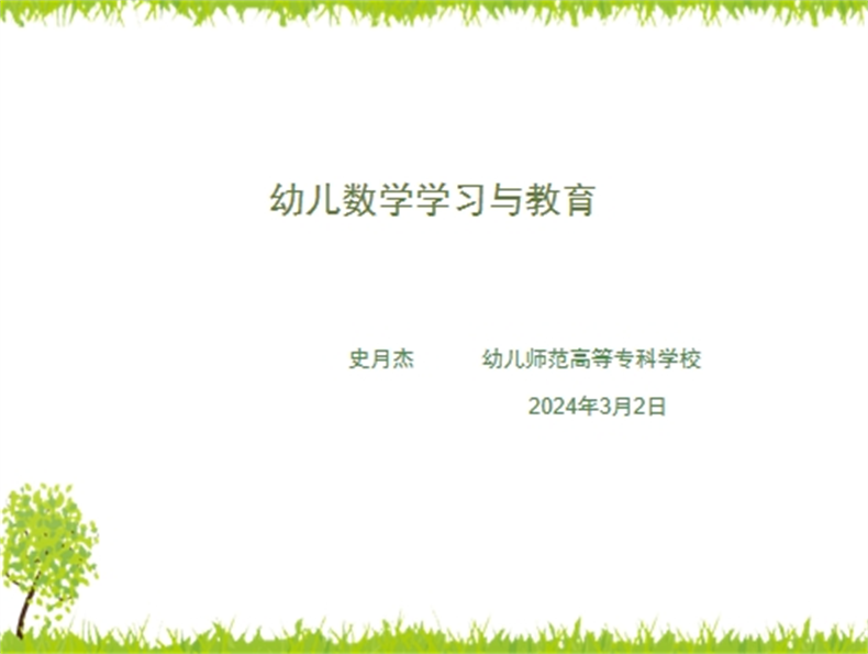 課上,史月杰圍繞《幼兒數學學習與教育》主題,從幼兒數學學習的內容、特點及教育三方面展開詳細的課程講解。