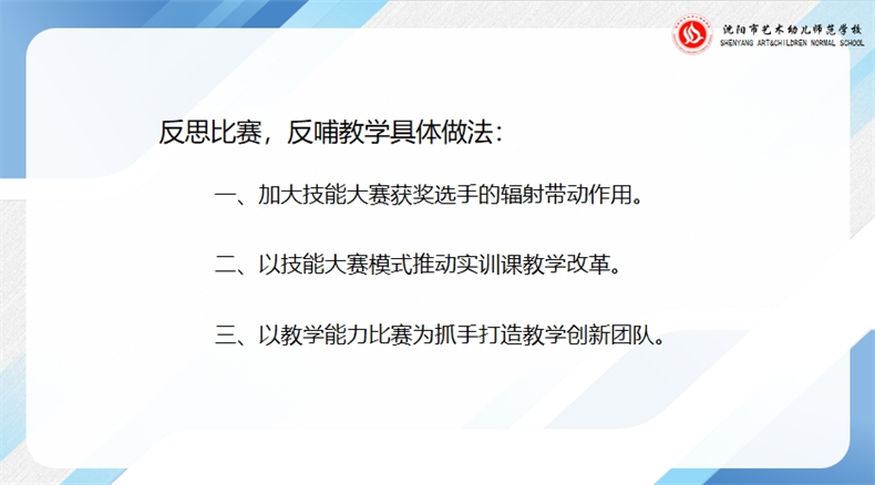 梁悅秋從選手選擇、教師指導(dǎo)策略、賽后反思、賽事實(shí)效幾方面為我們傳授職業(yè)技能大賽經(jīng)驗(yàn)。她提到,為遵循“基于教學(xué)、高于教學(xué)、引領(lǐng)教學(xué)”的大賽原則,落實(shí)深化三教改革、“崗課賽證”綜合育人新要求,學(xué)校多措并舉將大賽成果運(yùn)用于教學(xué)、反哺于教學(xué)。發(fā)揮技能大賽獲獎選手的輻射帶動作用,以技能大賽模式推動實(shí)訓(xùn)課教學(xué)改革,以教學(xué)能力比賽為抓手打造教學(xué)創(chuàng)新團(tuán)隊。