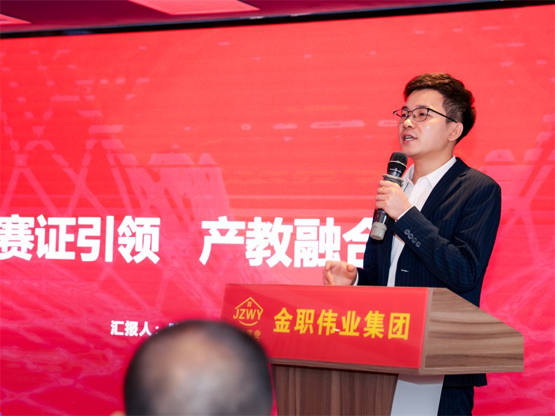 典禮最后,易斌以《賽證引領 產教融合》為主題介紹了金職偉業2024年工作規劃。他提到,金職偉業期待在智慧職教產品研發、課證融通教材編寫、共建產業學院、大賽支持、教師企業實踐項目設計等多方面與院校開展深度合作,以貼心、專業、創新、感恩的服務宗旨,服務院校工作,助力院校及教師出成果、見實效。