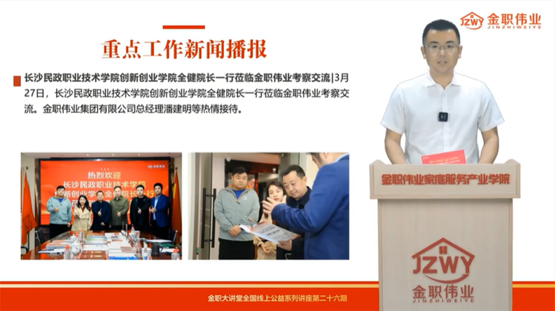 課程伊始,金職偉業院校事業部總監周該生作本周工作總結匯報。