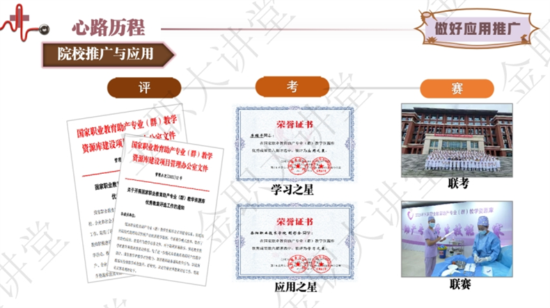 “在建設之初,學校就組織教師認真研讀了相關文件,并對照學校已有專業分析國家級、省級資源庫立項情況,確定了建設國家級教學資源庫的目標。”邱志軍談到,在前期準備階段,學校分析了國內現有的教學資源庫建設情況,取長補短,設計了包含“一聯盟、二中心、三平臺、四資源館”的助產專業群資源庫;開展了相關標準、人才培養規格、實踐專家訪談等方面的調研,形成人才培養方案調研報告;按照從新手到生手、熟手、能手、高手的職業成長規律,重構了包含基本護理、專科護理、重點人群護理、綜合情景4個領域,標準、證書、技術、思政、賽規4個融合的專業課程體系,并對應每一門課程開發其課程標準。