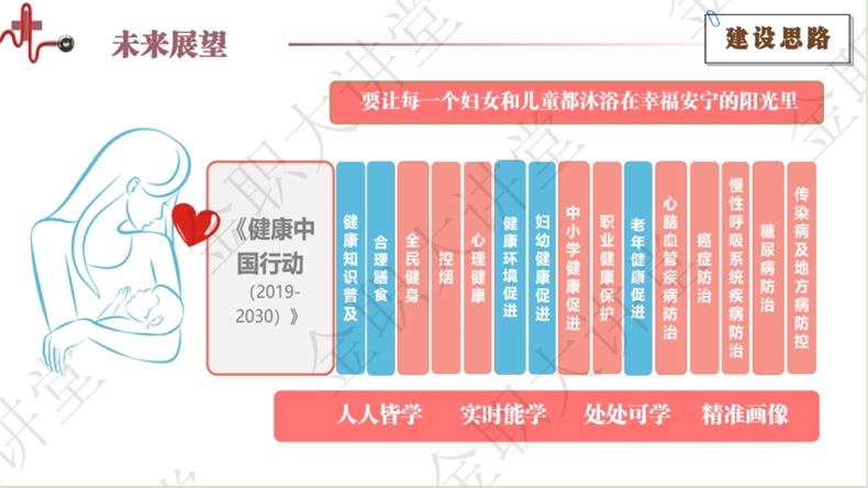 課堂最后,邱志軍就學校下一步的教學資源庫建設方向與重點作簡要介紹。“資源庫設計定位于女性全生命周期健康的守護者,我們期望讓每一個婦女兒童都沐浴在幸福安寧的陽光里。”“面對數字時代的到來,教育必須適應社會變遷并加速變革,培養適應未來社會的時代新人。建好教學資源庫對學生的成長和教師個人的發展都有著重要的意義,讓我們擁抱數字時代,共享美好未來。”