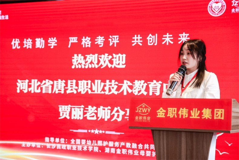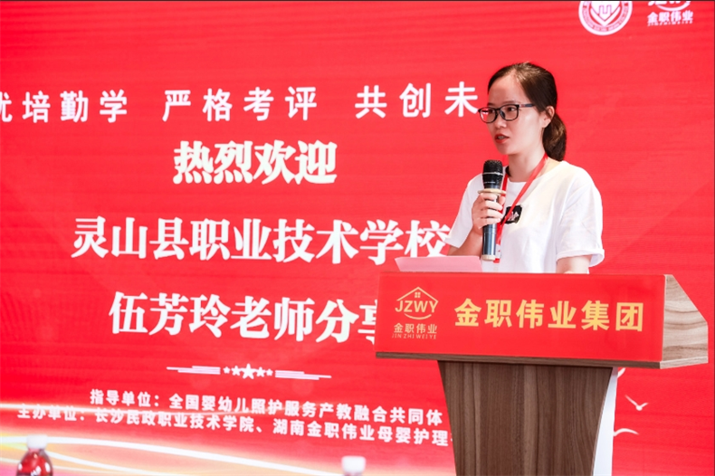 伍芳玲老師作為優秀班干部發言,她表示本次培訓質量高且內容豐富,不僅讓她充實了理論知識,更讓她開闊了視野、解放了思想,全面提升了理論水平和工作能力;同時對1+X幼兒照護職業等級證書的考評工作也有了進一步的了解,為她解決了今后幼兒照護工作中的困惑與迷茫,使她更加堅定了做好幼兒照護工作的信心和決心。