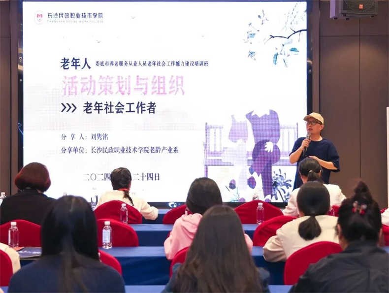 此次培訓邀請到長沙民政職業技術學院老齡產業系導師、全國示范性老年友好型社區工作專家庫專家劉雋銘,長沙民政職業技術學院老齡產業系副教授蔣玉芝授課。課程內容豐富,涵蓋老年人活動策劃與實施,老年群體需求與特殊問題處理,老年社會工作人才隊伍建設、價值與倫理、實務通用過程、方法與技巧等課程。