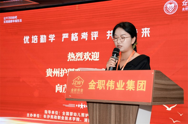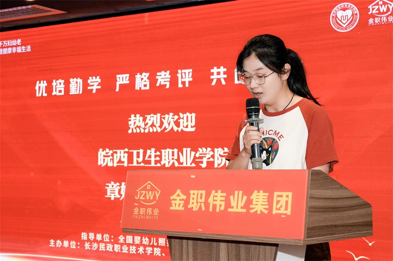 “在這短短6天的培訓中,金職偉業為我們安排了豐富的培訓課程,老師們以通俗易懂的語言,耐心細致的答疑解惑,毫無保留地分享他們的研究成果,無論是從理論的學習還是對實操技能的掌握上,都讓我們收獲滿滿。”皖西衛生職業學院章姝婷老師作為優秀班干部代表講話。她表示,本次培訓讓她更加深刻地認識到肩負的責任。未來,她將以更加飽滿的熱情和更嚴謹的態度,投入到工作與學習中,為嬰幼兒教育事業貢獻自己的力量。