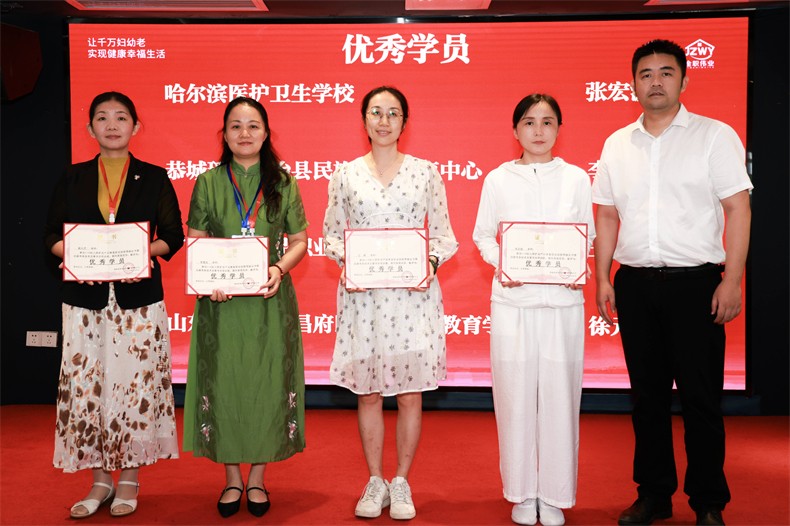 結(jié)業(yè)典禮上,金職偉業(yè)集團(tuán)有限公司(以下簡(jiǎn)稱“金職偉業(yè)”)集中表彰了哈爾濱醫(yī)護(hù)衛(wèi)生學(xué)校張宏波等4名“優(yōu)秀學(xué)員”、廣州華夏職業(yè)學(xué)院黃鎮(zhèn)等3名“優(yōu)秀班干部”,并為其頒發(fā)榮譽(yù)證書。