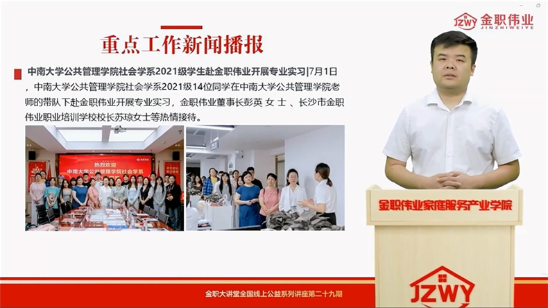 課程伊始,金職偉業總經理助理、產業學院副院長湯曌宇作本周工作總結匯報。