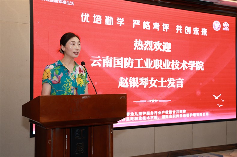 云南國防工業(yè)職業(yè)技術學院學員代表趙銀琴向搭建培訓平臺的金職偉業(yè)及授課專家們表示衷心的感謝,并講述了自己的學習初衷。“幼兒,是國家的未來,是民族的希望。他們的健康成長,離不開每個照護者的精心呵護與引導。幼兒照護師資及考評員培訓不僅是我們提升專業(yè)素養(yǎng)、增強職業(yè)能力的有效途徑,更是我們?yōu)楹⒆觿?chuàng)造一個安全、健康、快樂的成長環(huán)境的必備條件。”她代表全體學員承諾:在培訓期間,及時轉變自己的角色,全身心投入培訓;用飽滿的熱情、專注的態(tài)度認真學習,全面提升自身的教育教學能力。