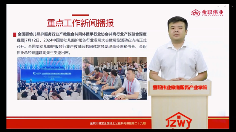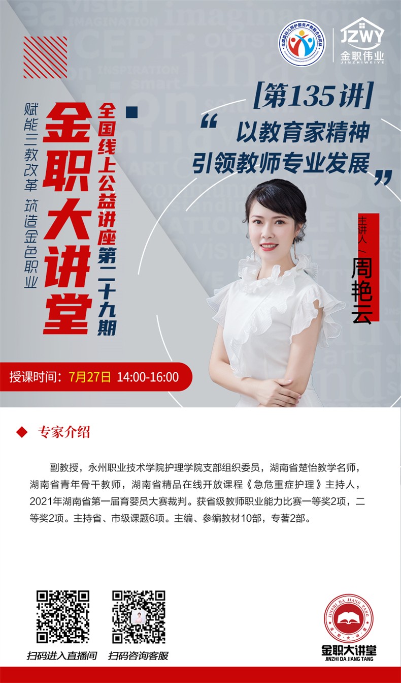7月20日,金職大講堂第134講開講,課程邀請到永州職業技術學院唐玲芳老師作《醫育融合,以賽促教,協同促進嬰幼兒托育專業發展》主題授課。
