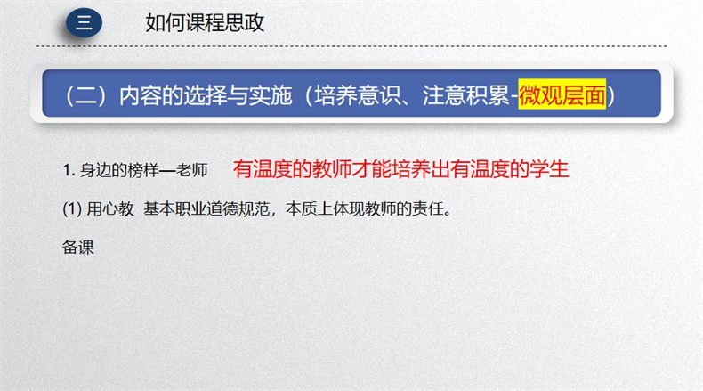 彭海平副教授首先強調,課程思政有著堅實的政策基礎與深厚的理論支撐。自黨的十八大以來,以習近平同志為核心的黨中央重視高校思想政治工作,緊緊抓住落實高校“立德樹人,鑄魂育人”的根本任務,抓住思政課程建設和課程思政建設兩個中心環節,提出了一系列的新理念、新思想、新戰略和新舉措?!陡叩葘W校課程思政建設指導綱要》《關于加快醫學教育創新發展的指導意見》等重要文件的出臺,為衛生職業院校課程思政的建設提供了明確的方向和有力的保障。