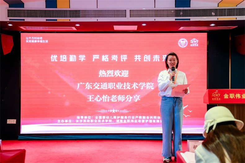 作為優秀學員代表,廣東交通職業技術學院王心怡老師分享了學習心得。她衷心感謝金職偉業集團的精心組織與老師們的悉心指導,并表示本次培訓讓她作為一名音樂專業教師,得以系統掌握幼兒照護知識,了解學習幼兒照護技能的重要性。她深感此次培訓幫助她邁出了教師自我轉型的關鍵一步,增強了她為行業進步貢獻力量的決心。