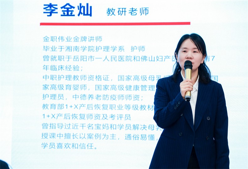 李丹丹代表金職偉業全體工作人員向學員們致以熱烈歡迎。她指出,育嬰員是一個充滿愛與責任、又具有挑戰性的職業,需要責任心、愛心、耐心和不斷學習的精神,她希望所有學員珍惜此次培訓機會,用熱情擁抱學習,用奮斗錘煉技能,用實力彰顯個人價值,成為一名優秀的育嬰員,創造屬于自己的未來。