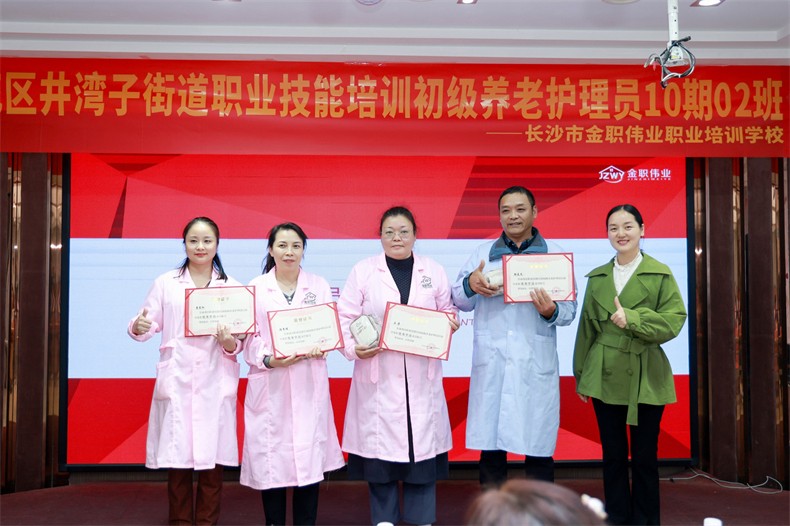 11月1日,雨花區井灣子街道職業技能培訓初級養老護理員10期02班結業典禮成功舉辦。長沙市金職偉業職業培訓學校副校長李丹丹、講師蔣琴出席典禮。參訓學員們齊聚一堂,共同回顧學習旅程的點點滴滴,共慶順利結業。