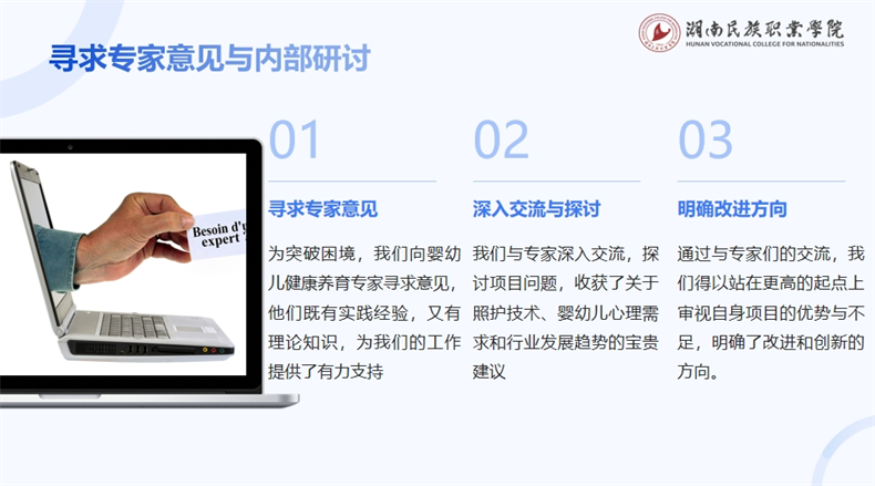 關于備賽經驗,李佳佳副教授從選手選拔、工作任務梳理、項目特色確定、項目設計與呈現等多個維度進行了分享。她特別提到,為突出項目特色,團隊通過廣泛征詢專家意見和深入研討,不斷改進項目方向,最終聚焦于嬰幼兒照護中實際工作總的關鍵問題,設計出一個以兒童視角為核心,兼具個性化和科學性的專業嬰幼兒照護項目。