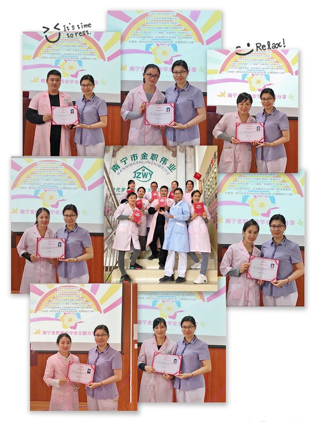 10月26日,南寧金職偉業職業培訓學校教室內歡笑不斷,氣氛熱烈,第8期小兒推拿保健師班、16期母嬰護理師班、19期母乳喂養指導師班結業典禮在南寧金職偉業創業孵化基地隆重召開,學員們即將帶著老師們的囑托,踏上新的起點。