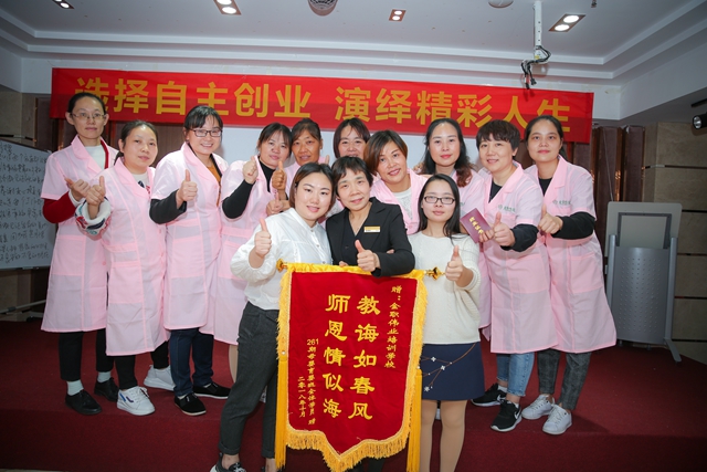 深入人心的歌詞,讓學員和講師深有感觸,回想起了12天的點點滴滴,學員落下了不舍的淚水。班長朱春梅代表261期母嬰保健師班學員為兩位講師送上錦旗,并向所有老師鞠躬道謝。